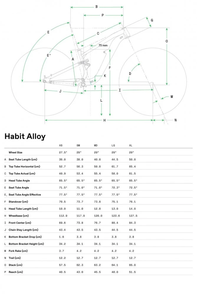 | Frame | Habit SmartForm C1 Alloy, 130mm travel, Proportional Response Suspension and Geo, 55mm chainline, ISCG05, BSA threaded BB, post mount brake, tapered headtube,DirectLine internal cable routing, UDH hanger |