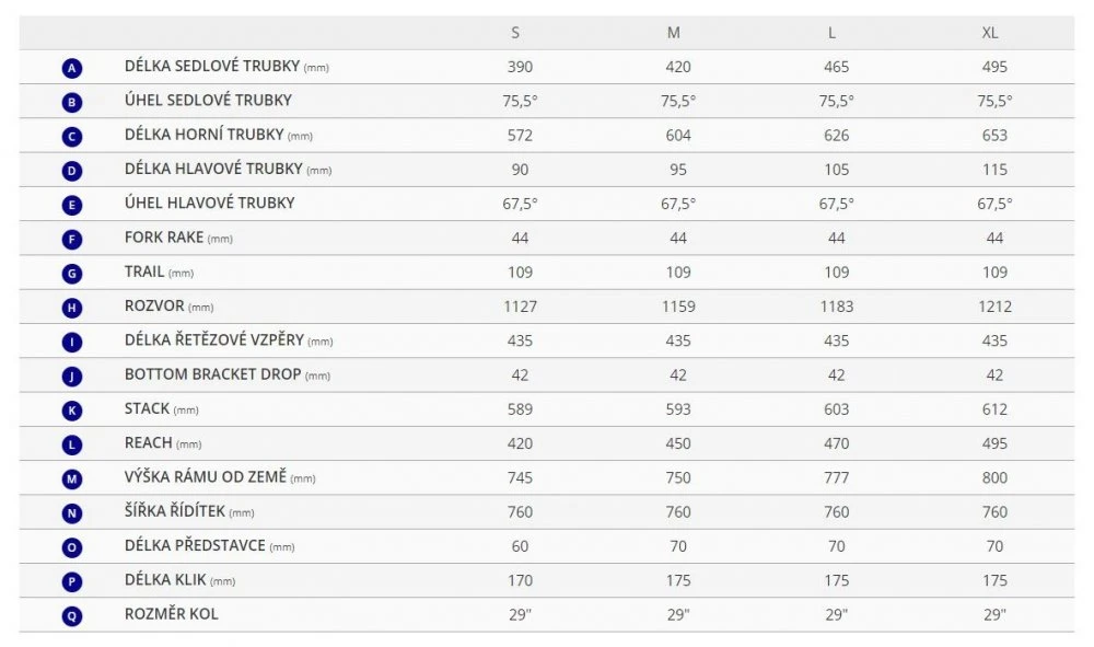 - modern geometry, head angleis 67.5°, seat tube angle 75.5°, rear structure length 435 mm