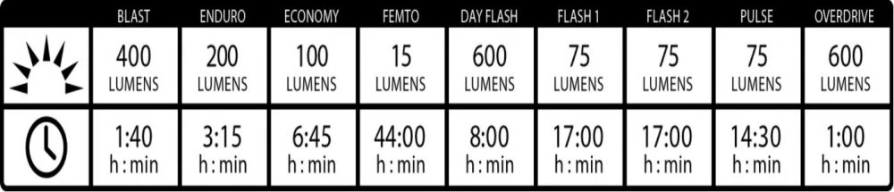 Front powerful multi-purpose light with a machined aluminum body with an intensity of up to 600 lumens and 9 lighting modes.