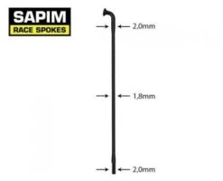 Sapim Race is a thin wire, the diameter of the head and thread is 2.0 mm, at a center of 1.8 mm. By reducing the diameter at the center of the wire, it is possible to save the weight of the string and reduce the weight of the wheel.
