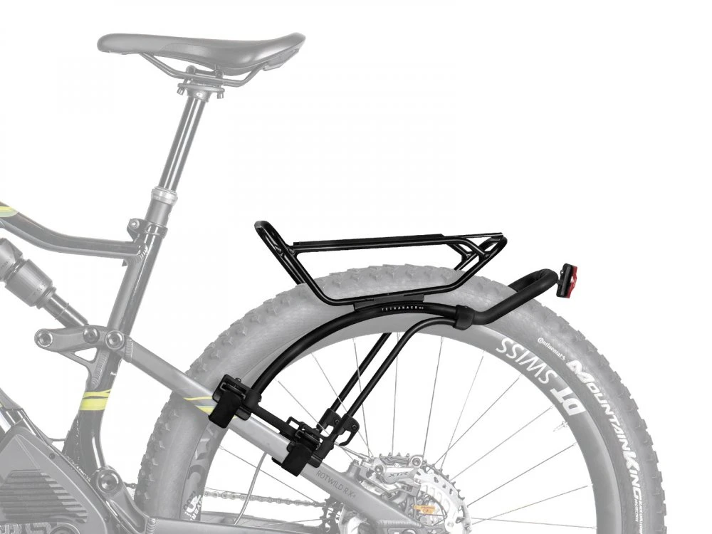 This universal-sized rear carrier features an innovative upper base that adjusts to the required level regardless of the angle on the frame tubes.