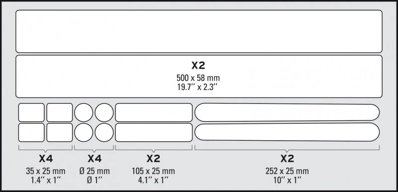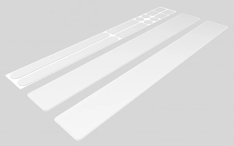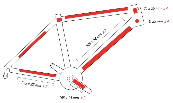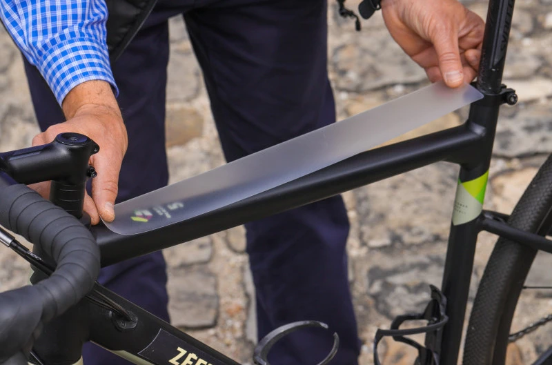 Set of translucent protective stickers on a bicycle frame.
